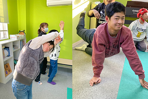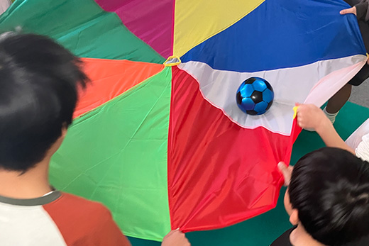 動くことを学び、動きを通して「からだ(動くこと)」と「あたま(考えること)」と「こころ(感じること)」の行動全体に関わる調和のとれた発達を促すことを目的で取り入れています